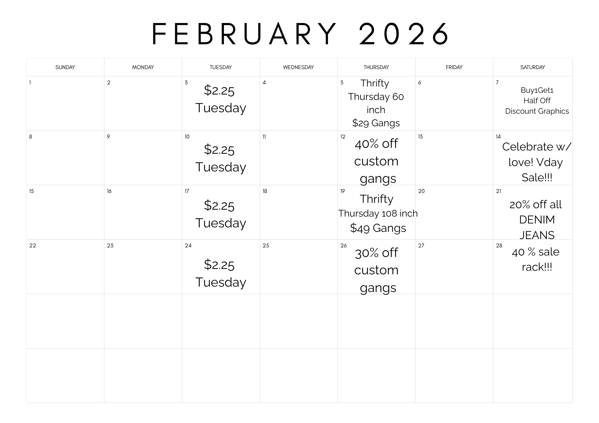 Friday $2.25 Day (11inches and under) 12 inch $4.50 invoices will be adjusted, Weekend Sales Friday-Sunday.