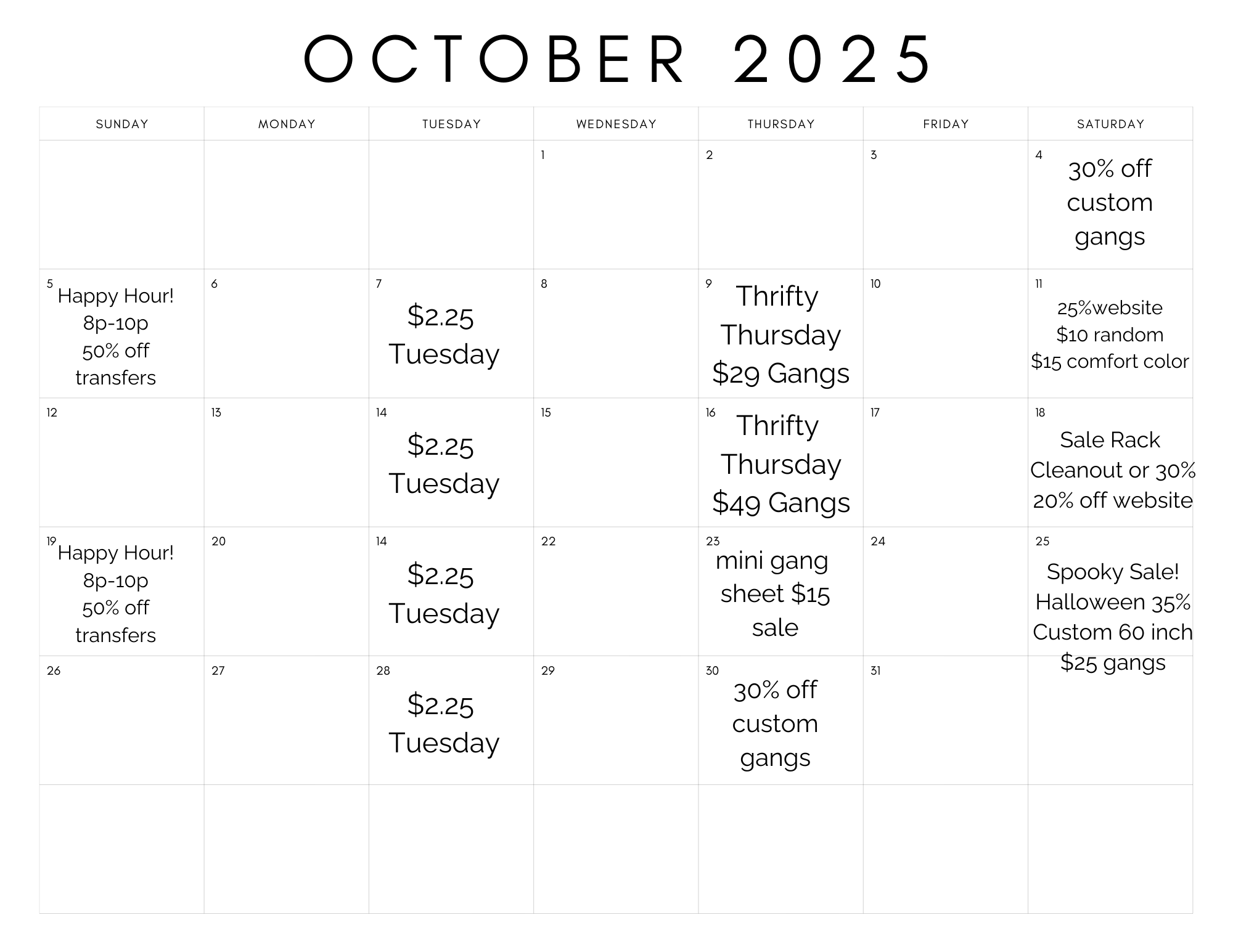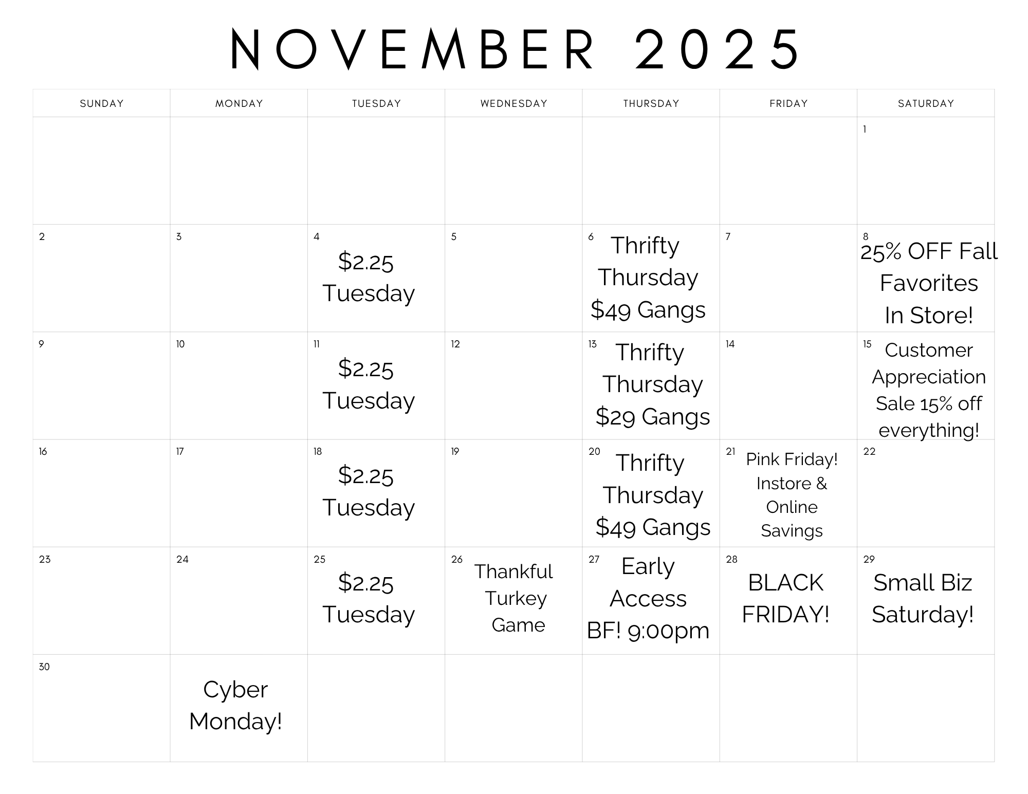 Check Out Our Monthly Sales Calendar.