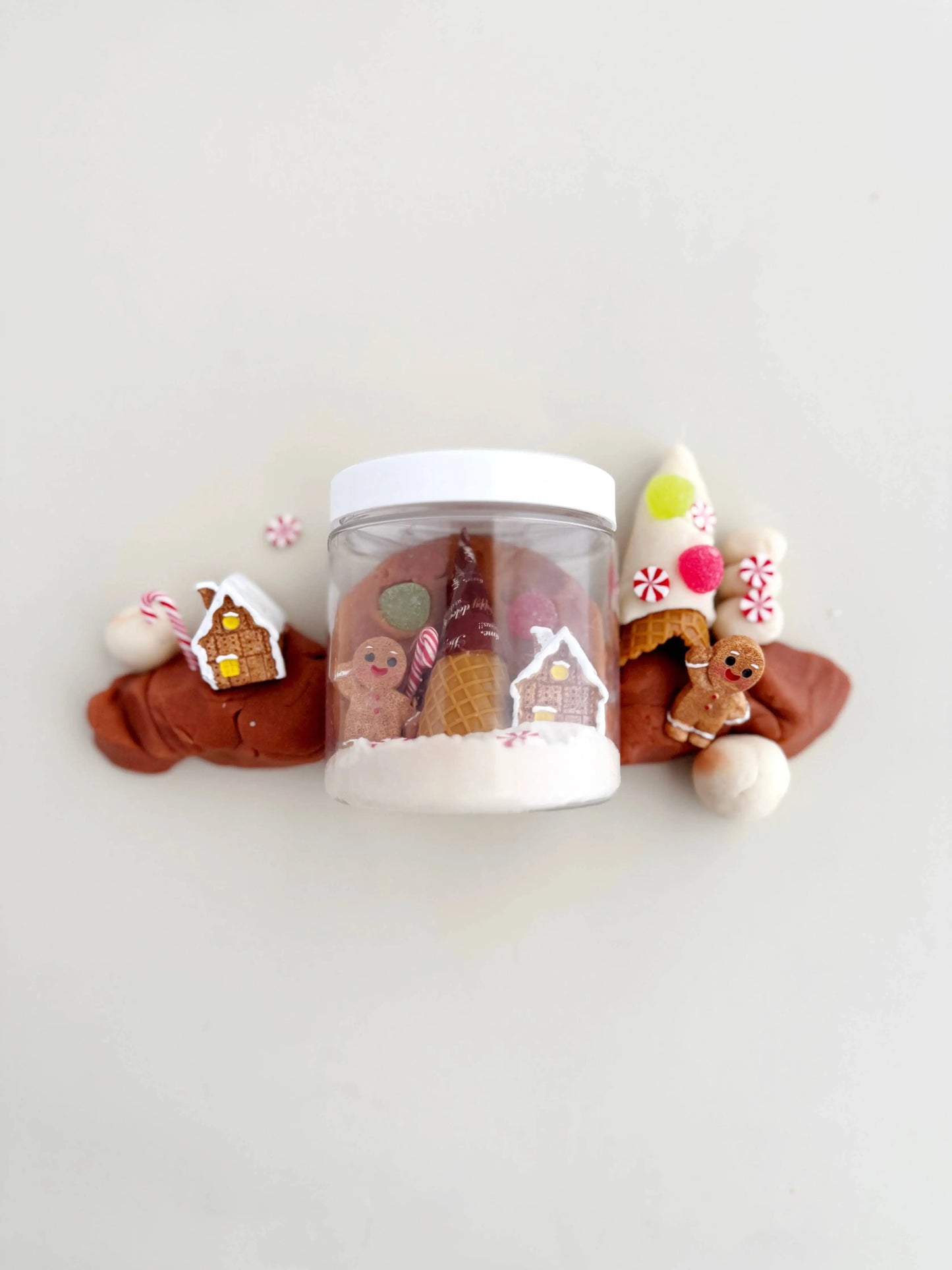 Includes: 4 oz Light Brown and White (Gingerbread Scent) KidDough, Gingerbread Man Cookie Cutter, 2 Candy Canes Charms, Gingerbread Man Charm, Gumdrops and Decorative Candy Fimos